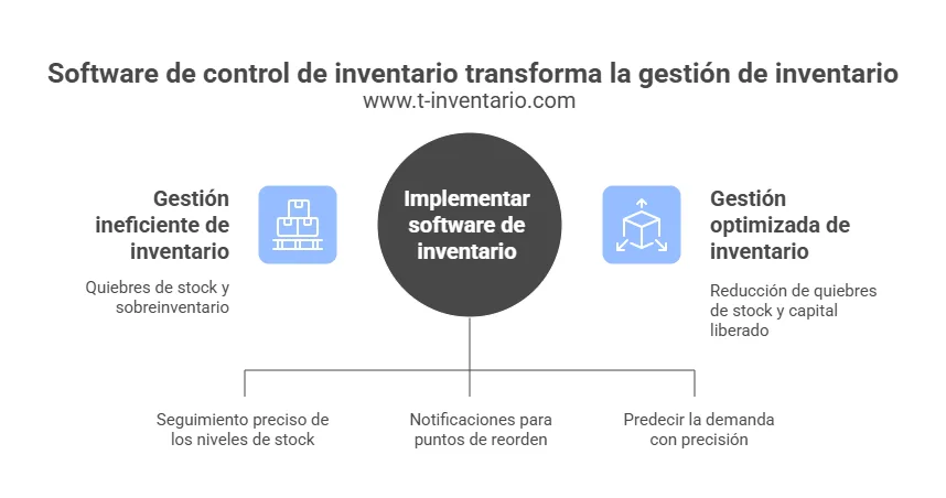 Al implementar una solución de software de control de inventario con el acompañamiento de T-Inventario, la transformación fue inmediata. El sistema proporcionó visibilidad en tiempo real del stock, generó alertas automáticas para puntos de reorden y ofreció datos históricos para predecir la demanda. En menos de seis meses, “Comercializadora del Pacífico” redujo sus quiebres de stock en un 90%, liberó el capital atrapado en inventario obsoleto y aumentó la eficiencia de su bodega en un 40%. Dejaron de adivinar y empezaron a decidir con certeza.